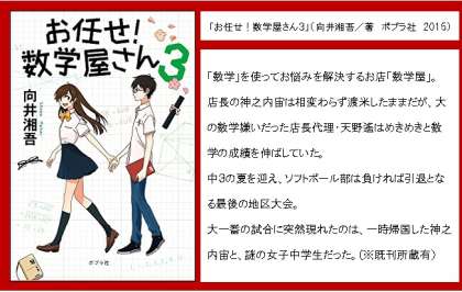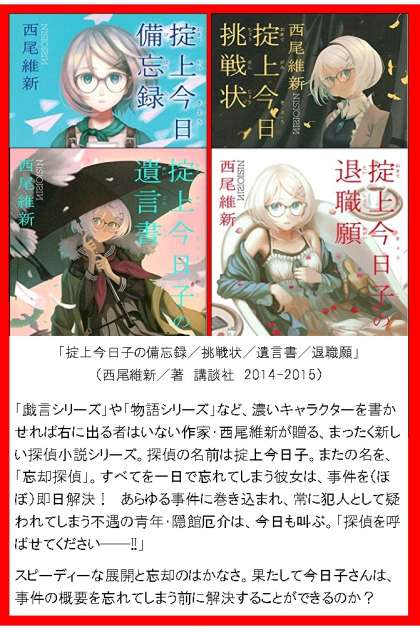 今回は「怪獣の夏 はるかな星へ」、「お任せ!数学屋さん3」、「掟上今日子の備忘録/挑戦状/遺言書/退職願」です。