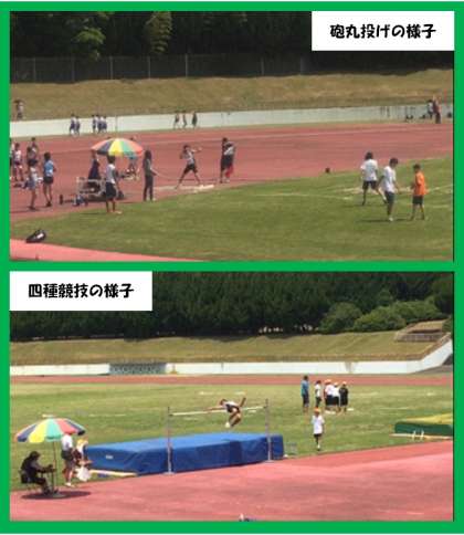 成績は、砲丸投げで1位が靳(ジン)君(3年)、2位 黒岩君 (3年)。