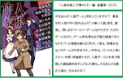 今回は「人狼作家」、「さよなら、ちょうじろう。」、「せかいいちのねこ」です。