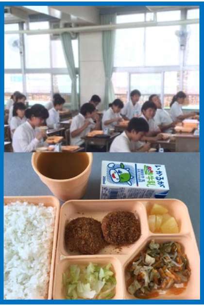 本日の給食のメニューは、「とんかつ」・「鶏肉と野菜の炒めもの」・「キャベツの即席づけ」・「パインアップル」・「缶詰」・「みそ汁」・「米飯」・「牛乳」でした。