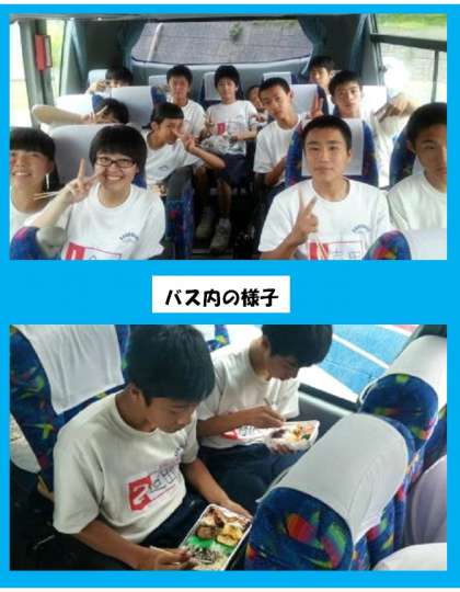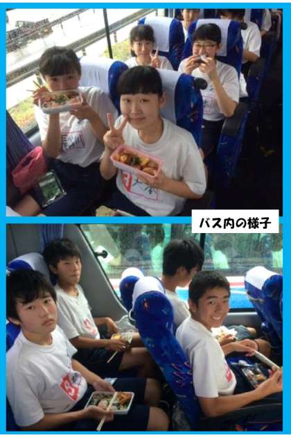 彦根スカイアドベンチャーで体験した後に昼食の予定でしたが、雨天のため、先にバスの中でお弁当を食べました。スカイアドベンチャーは雨具を着用して行われます。