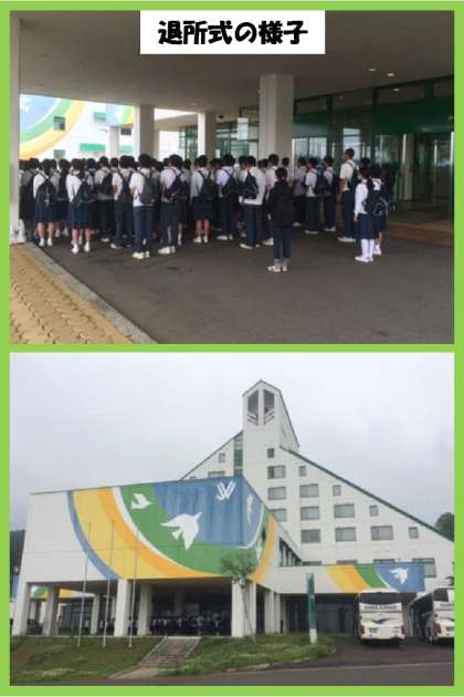 ホテルレインボーでの退所式です。ホテルの方から、挨拶などの礼儀がちゃんとしている学校だとお褒めの言葉をいただきました。より良い学年になれるように、これからも頑張ってほしいです。