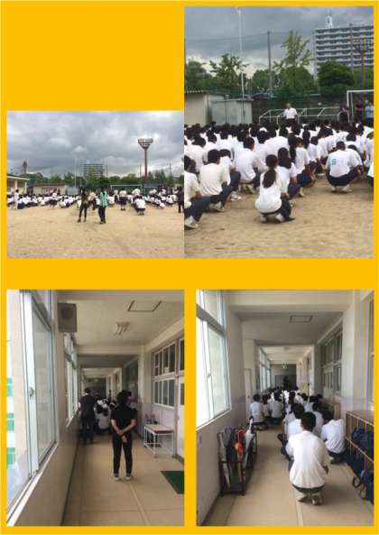 月曜日に今週のどこかで避難訓練を行うと予告していましたが、生徒たちは機敏に避難できました。ただ、集合してからの点呼に時間がかかっています。意識を高めましょう。