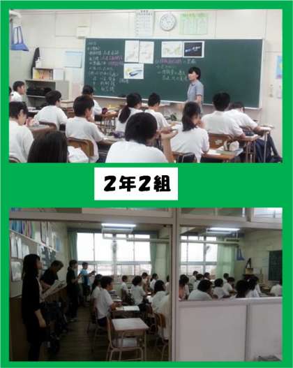 金曜日は通常5時間で終わりますが、6時間目を利用して2年生の先生方の研究授業を実施しました。2年1組は英語、2組は社会、3組は国語を行い、全員の先生が3教室に分かれて見学し、終了後意見交換をしました。