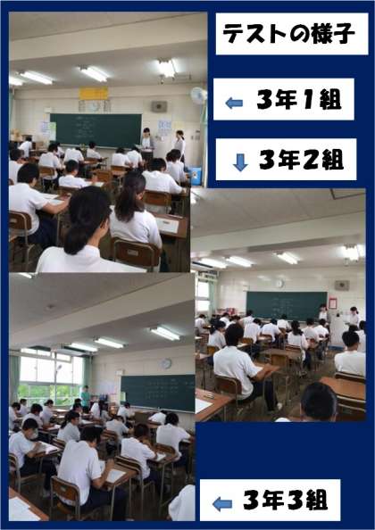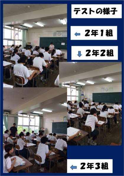 本日のテストは、「社会」・「英語」・「技家」・「音楽」でした。