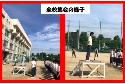 月曜日の朝は全校集会です。気温も朝からグングン上がり、夏本番の様相です。