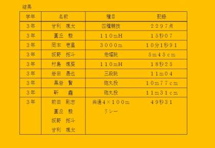 結果は3年生、甘利君が四種競技で2位に入り、近畿大会出場の切符を手にしました。同じく3年生の圓丘君は110mハードルで全国大会まであと0.07秒というところまで迫りましたが、あと一歩届きませんでした。しかし、決勝で4位という好成績をおさめました。