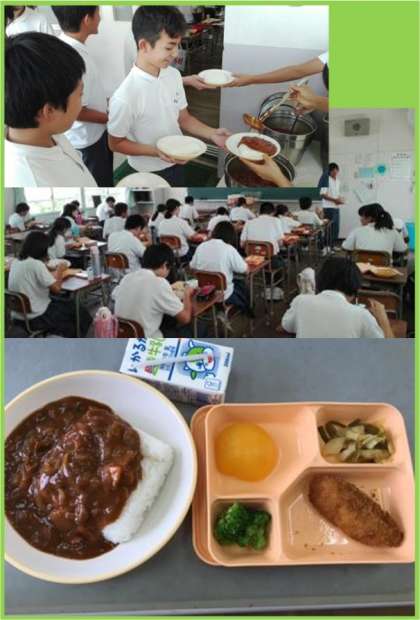 本日の給食は、「ハヤシライス」・「ブロッコリー」・「白身魚フライ」・「海そうサラダ」・「黄桃缶詰」・「米飯」・「牛乳」でした。