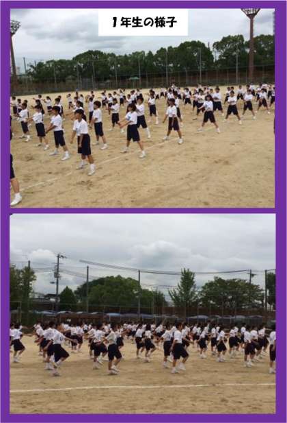 開会式の整列・ラジオ体操・校歌を練習した後、春日出中学校伝統の行進を頑張りました。なかなかリズムにそろわなかった足踏みも、回を重ねるごとにそろってきて、一人一人の表情も真剣になってきました。
