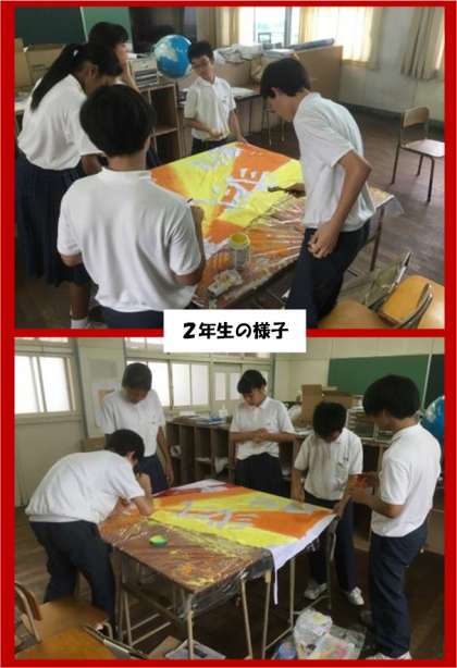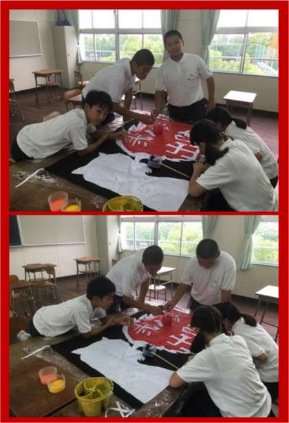 放課後、各クラスでは学級旗づくりをしています。(担当:2年生)