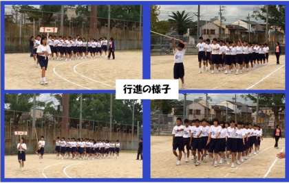 曇り空の下、1年生の学年練習が始まりました。まずは行進から。1年生の元気の良さが少しずつでてきました。