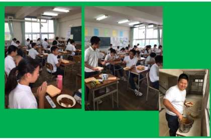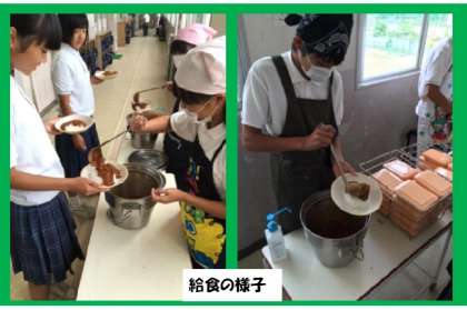 本日の給食メニューは、「ポークハヤシライス」・「枝豆」・「鶏肉とキャベツのソテー」・「だいこんのピクルス」・「みかん」・「米飯」・「牛乳」でした。
