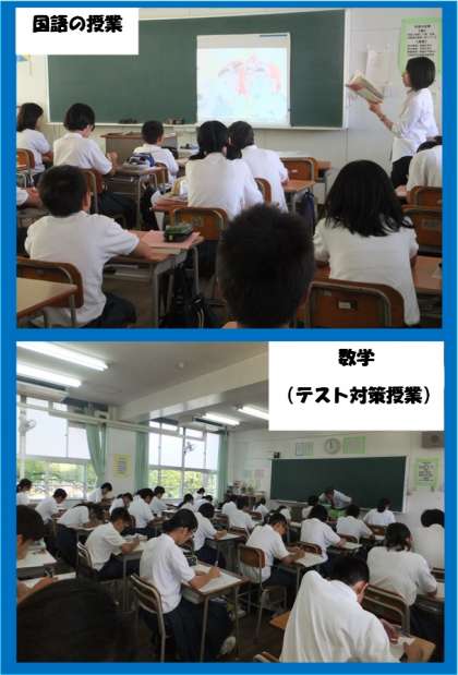 10月6日(木)、心配された台風も通り過ぎ、朝から気持の良い秋晴れになりました。良い天気だったので、体調不良の人も減り、欠席者の数も減ってくれることを期待していました。しかし、どのクラスでも数名ずつ欠席している人がいました。(授業の時にポツポツ空席があると寂しくなります。)授業はテスト前ということで、『テスト対策授業』を行っている教科が多かったですね。「頑張ろうと思っているけど、何から手をつけたら良いか分からない。」という意見をよく耳にしますが、1年生の場合、どの教科でも、やることははっきりしています。(テストに向けての学習法を細かく説明してくれる先生がほとんどです。)あとは、どれだけ真剣にテスト勉強に取り組めるかにかかっています。3年生になってから、「1年生の時から必死で頑張っておけば良かった。」なんて悲しい言い訳をしなくてもいいように頑張ってくださいね。(担当:若月)