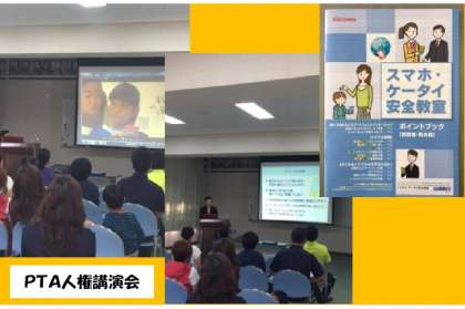 8日の土曜授業が終わった後、NTTドコモから講師の先生を招き、「スマホ・ケータイ安全教室」を開催しました。保護者も使い方をしっかりと知っておかなければ、子どもたちを守ることはできません。参加された保護者の皆様はしっかりと聞いておられました。