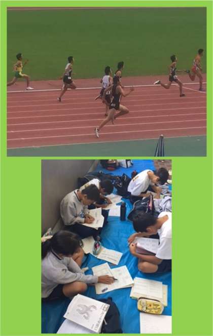 皆、精一杯がんばりました。また、中間テスト前と言うこともあり、アップや応援の合間にも熱心に勉強していました。(顧問:中川、竹内)