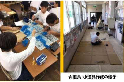 6・7時間目は舞台発表の取り組みです。役者や照明の担当は体育館で動きをつけて練習しています。大道具や小道具は完成形が徐々に見えてきています。みんな黙々と作業していました。