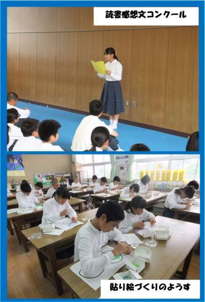 10月19日(水)、文化祭取り組み強化期間3日目に入り少し疲れが出てきているのか、朝学活のときの表情も『元気いっぱい』といった感じではありませんでした。それでも、4時間目の合同体育では、持久走を頑張っていました。(給食の時は、「疲れ過ぎて食欲がなくなった!!」といっている人もいましたが…。)5時間目は、格技室で国語科の取り組みである『読書感想文コンクール』の学年の予選会が行われました。各クラスから選ばれた2名の代表者が、素晴らしい作文を大きな声でしっかり発表してくれました。(正直、中学1年生が書いた作文とは思えない完成度でした。)1位は3組の栫さん、2位が2組の中村さん、3位が1組の山崎くんでした。入賞できなかった人も甲乙つけがたい素晴らしい発表でした。栫さんには、文化祭本番で、1年生代表として自信を持って頑張ってほしいですね。