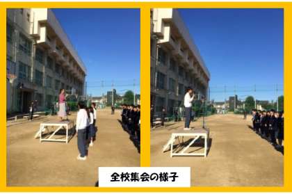 月曜日は全校集会です。本日も8時25分には整列ができ、朝の挨拶ができました。