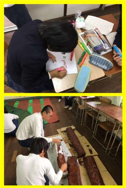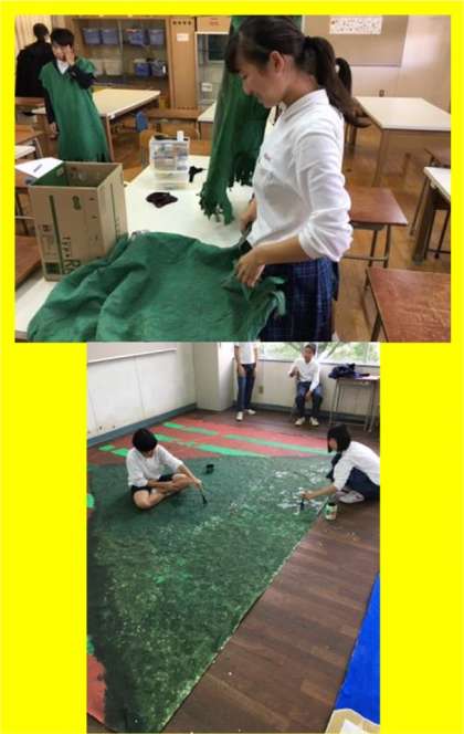 6・7時間目は舞台発表の取り組みです。役者も最初から通して練習をしたり、大道具や衣装係も完成間近で、仕上げに取りかかっています。