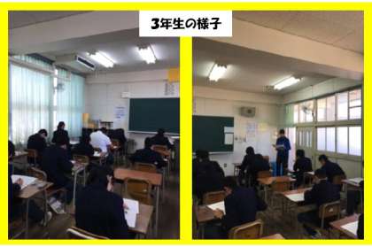 3年生は、第3回校内実力テストが行われました。進路選択にとって、大事なテストです。1,2年生は、大阪市英語力調査(「英検IBA」)を実施しました。1年生は英検4・5級レベル、2年生は3〜5級レベルの内容です。