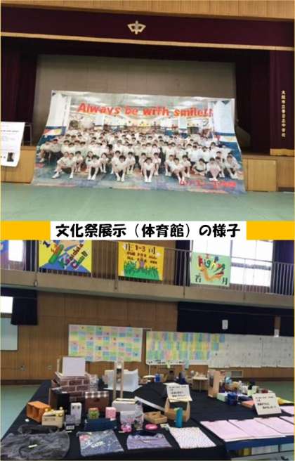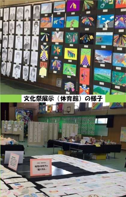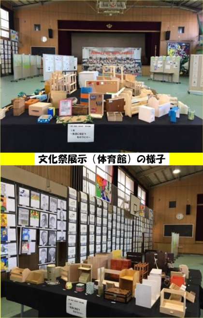 本日は土曜授業の日です。並行して、作品を体育館等で展示しています。