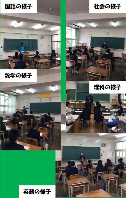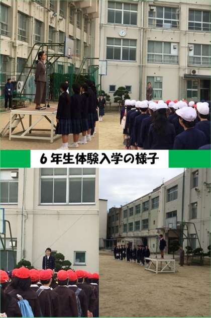 午前中で期末テストが終わり、午後から春日出・梅香・西九条の3小学校6年生を招き、授業の模擬体験と部活動への体験入部を行いました。