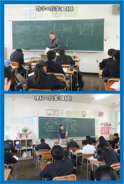 期末テストが終わり、ホッとする間もなく、数学では1月12日(木)の実力テスト(チャレンジテスト)に向けて、1年生の学習内容を総復習しています。思っていた以上に、大部分の人が1学期の内容も忘れていないことに驚かされました。「結果よりも過程が大切!!」この機会に、しっかり復習して実力を十分過ぎるぐらいつけてください!!(担当:若月)