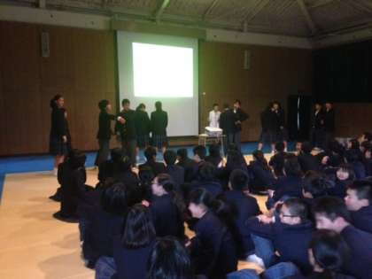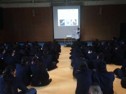 2年生では、「性」について、ここちよい人間関係づくり、という面から考えました。中学生は、心身の発達がめざましい時期であるとともに、他者や社会からも「大人」として扱われたりふるまったりしなければならない場面や必要性が増えてきます。すると、子どもと大人の「はざま」で人間関係づくりに悩むことも多いもの。同性や異性の友人、先輩後輩、家族、先生、自分をとりまく様々な立場の人たちとここちよい関係を築くには、どんな「こころ」と「からだ」の距離がのぞましいのだろう?あらためて自分と他者とのつながりを考える機会になったのではないかと思います。