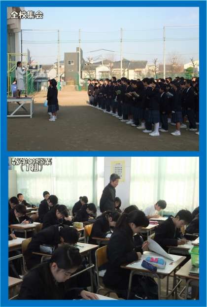 1月12日(木)の実力テストに向けての準備の意味もあり、なかなかのボリュームでした。定期テストの勉強同様に、なるべく早くから取りかかり、余裕を持って勉強できるといいですね。懇談中の放課後の時間も上手くつかってください。(担当:若月)