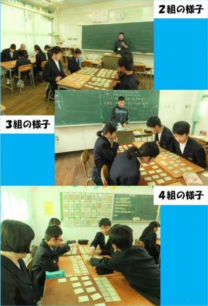 昨日、1年生は体育館でクラス対抗百人一首大会を行う予定でしたが、インフルエンザの流行により、クラスごとに大会を行いました。