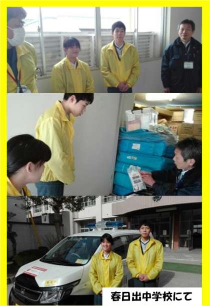 此花区役所には3人が体験しています。そのうちの2人が本校にある貯蓄倉庫に品物の搬入にきました。(担当:竹久)