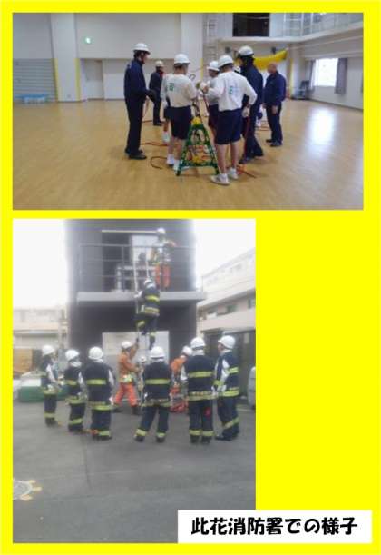 此花消防署には8名が体験活動をしています。ロープワークの訓練に取り組んでいました。(担当:土居)