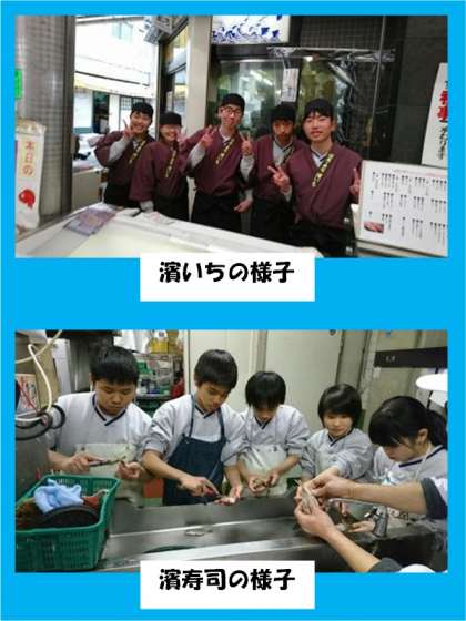 昨日のメンバーと交代をして、濱いちは巻き寿司の店頭販売、濱寿司はコース料理の調理をしました。(担当:岩城)