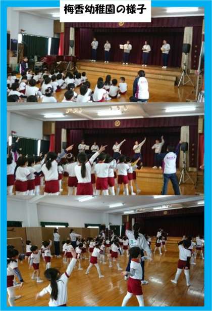 おゆうぎ会で、サックスやタンバリンで「さんぽ」、「妖怪体操」の演奏を披露しました。園児たちは初めて見るサックスに興味津々で、みんな喜んで楽しく歌ったり踊ったりしました。(担当:岩城)