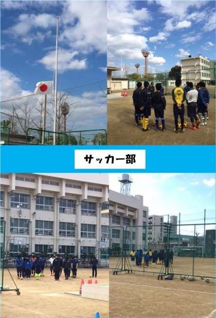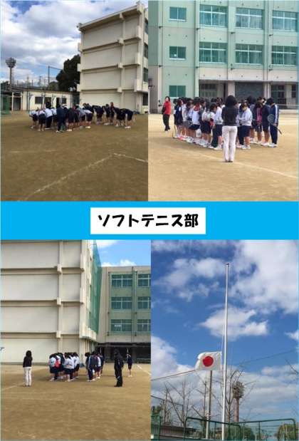 本校では、サッカー部が校内で練習をしており、ソフトテニス部が大正北中学校を招き練習試合をしていましたが、各顧問が生徒たちを集めて話しをして、東北の方向に向かって、御冥福をお祈りしました。