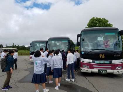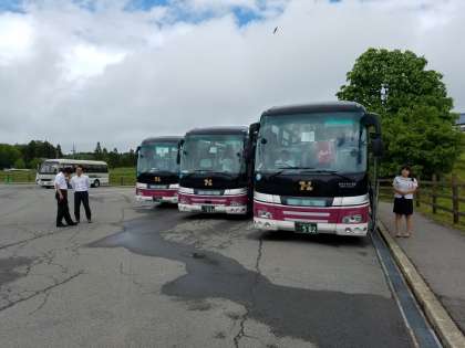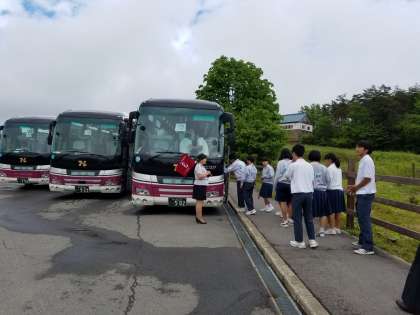 牧歌の里で昼食を終え、14:00頃に出発しました。予定より15分ほど遅れていますが、18:00頃には学校に到着予定です。