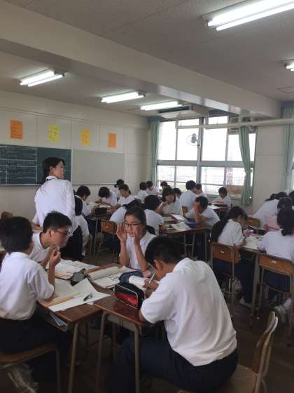 1年生 教育実習の射場先生の国語の様子です。グループ学習で行っていました。