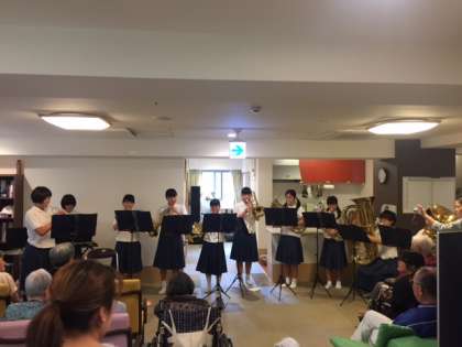 6月11日、高齢者グループホーム・ラヴィータから依頼を受け、本校の吹奏楽部が演奏させて頂きました。