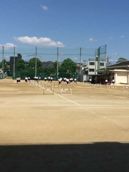 3年生はハードル走を女子の体育で行っていました。