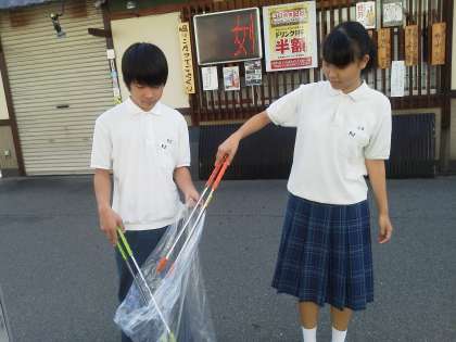 毎月第1日曜日の朝8時、西九条駅周辺を清掃します。生徒会のメンバーだけでは大変なので、クラブ等々で無理な人は仕方ありませんが、ひょっとして、クラブの集合時間までに空き時間のある人などいるのかしら、気持ちが向いたら参加してみてください。きれいになると気持ちいいですよ。あっそうそう、お駄賃にペットボトルのお茶がいただけます。