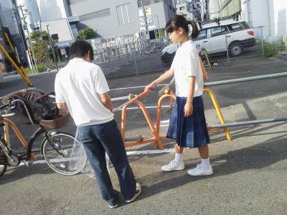 昨年度の「区長と語ろう!」の席上、「此花区をクリーンな街にしたいから、地域の皆さんの清掃活動を中学生も手伝ってくれませんか!」と生徒会が依頼され、先月初めて参加してくれました。先月は鳴物入りでしたから、全員覚えていたのですが、毎月のことですから、今月は注意が散漫になっていました。そんな中で、私が行ってみると、兼松彪さんと山本菜那香さんの2人が地域の人に交じって清掃活動を始めてくれていました。嬉しかったです。私一人孤立せずに済んで、有難かったです。