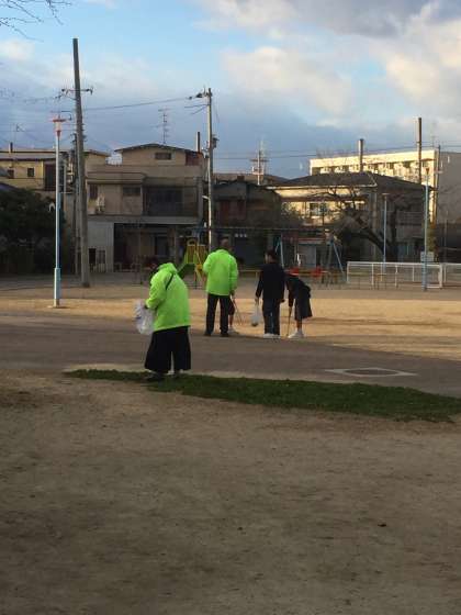 放課後、春日出グランド周辺の清掃を行い、無事に終えることができました。参加していただいた地域の皆様、区役所の皆様、1年生の皆さんありがとうございました。