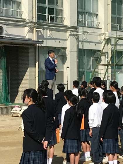 今朝は、此花区の前田昌則区長が、全校集会にお見えですので、ご挨拶を頂戴します。