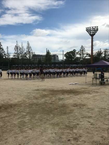 が春日出グランドで一生懸命に行進の練習をしていました。