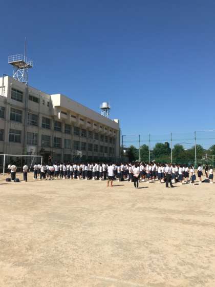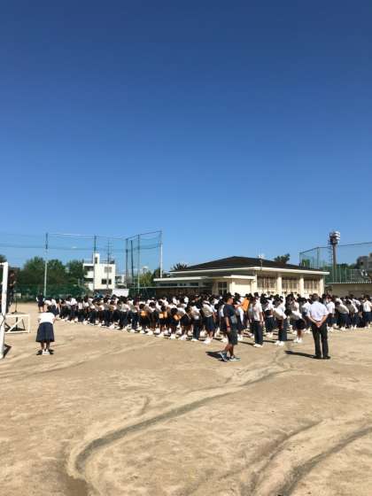 台風の影響も無く本日、10時30分前に集合が完了して全校集会が始まりました。