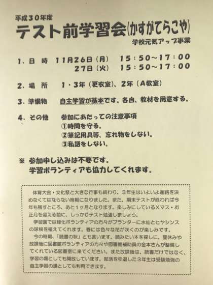 11月26・27日の2日間、学習ボランティアの方も来ていただけるので、是非参加してください。