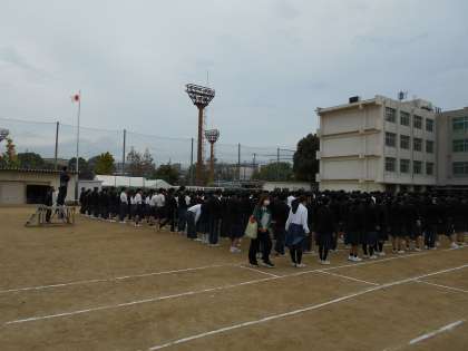 11月5日に大阪府で南海トラフ巨大地震を想定した880万人訓練を学校でも実施しました。地震はいつ起こるかわかりませんもしものために必要な訓練です。揺れが収まって運動場へ避難。津波の恐れが考えられたため3階以上の校舎の廊下へ避難。津波到着まで此花区では116分と言われています。この時間でより一層安全な場所への避難も考えられます。まずは、命を最優先に考えて行動しなくてはなりません。家にいるときの避難の仕方も考えましょう。