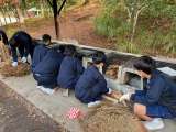 帰校しました。 解散式の生徒代表挨拶。 学年の先生からは、野外炊飯の後片付け、先...