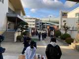 今日は、寒い中でも風のない穏やかな朝でした。 1枚目は登校風景。玄関での健康調査...