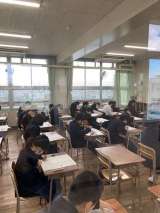 2年生理科。天気図を読み取ります。先生の問いかけにさっと手が挙がりました。 2年...
